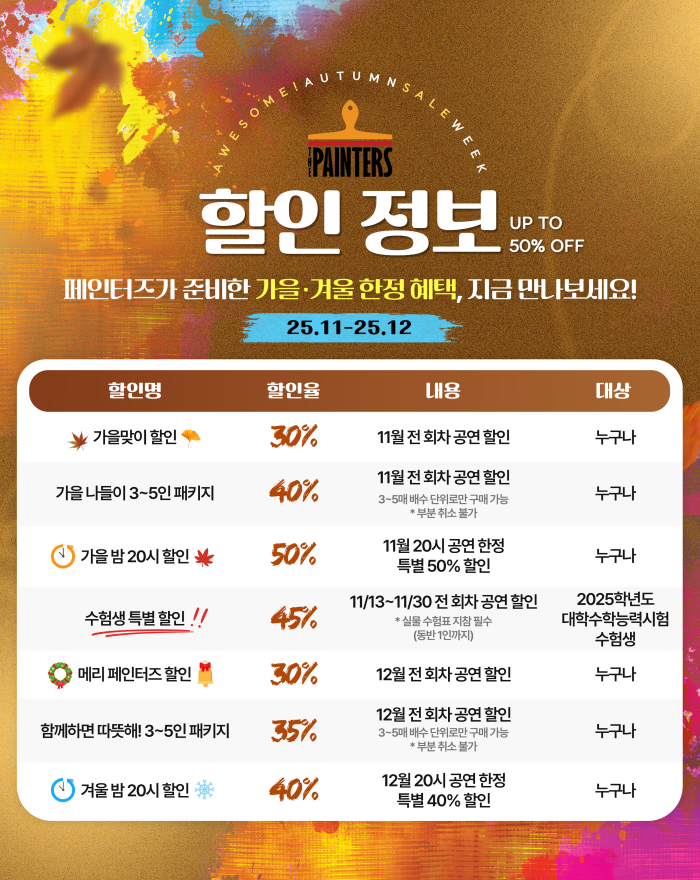 | 유효기간(이용조건) | 2025년05월01일(목) ~ 12월31일(수) (예매한 공연일시에 한해 이용 가능) | ||||||||