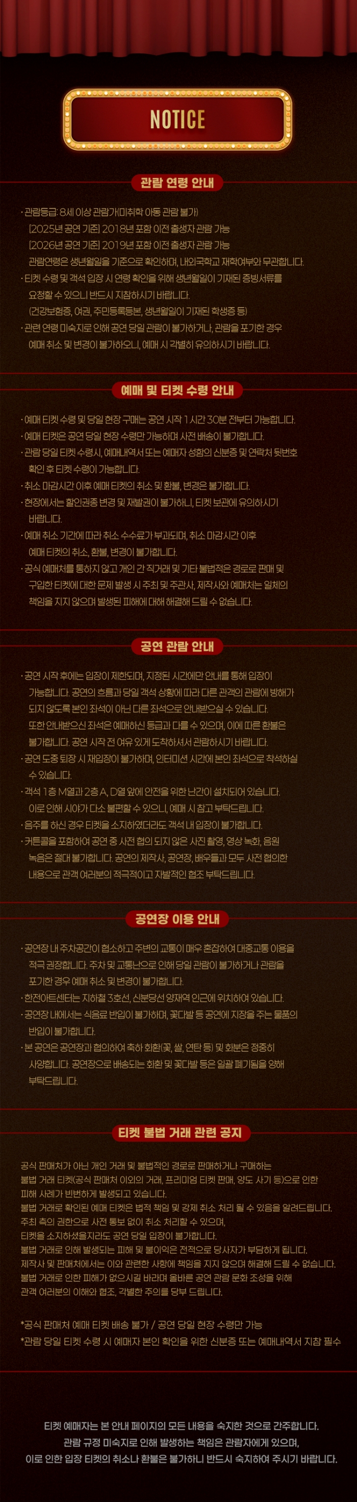 | 유효기간(이용조건) | 2025년12월12일(금) ~ 2026년02월22일(일) (예매한 공연일시에 한해 이용 가능) | ||||||||