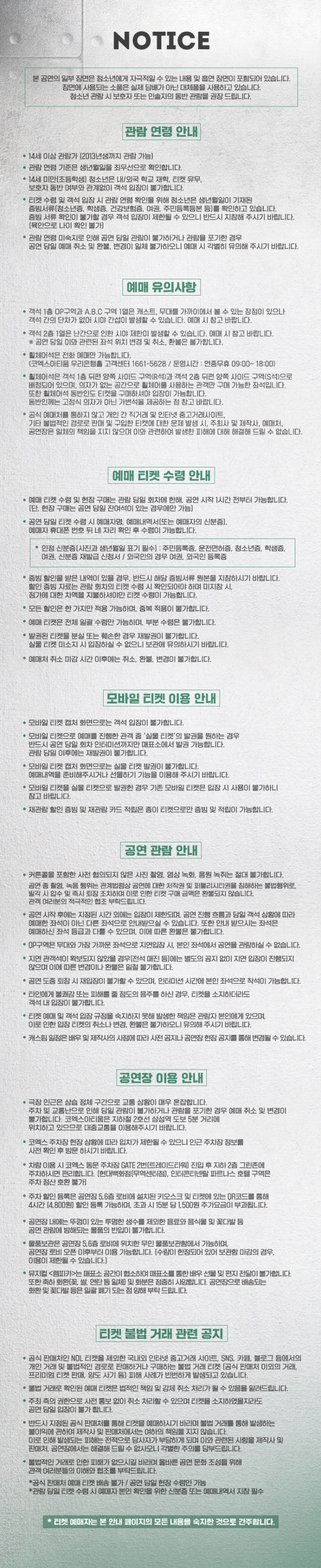 | 판매자(발행자) | 주식회사 놀유니버스 | 고객문의(소비자상담) | NOL티켓 1644-2620 (9:00-18:00) | ||||||
