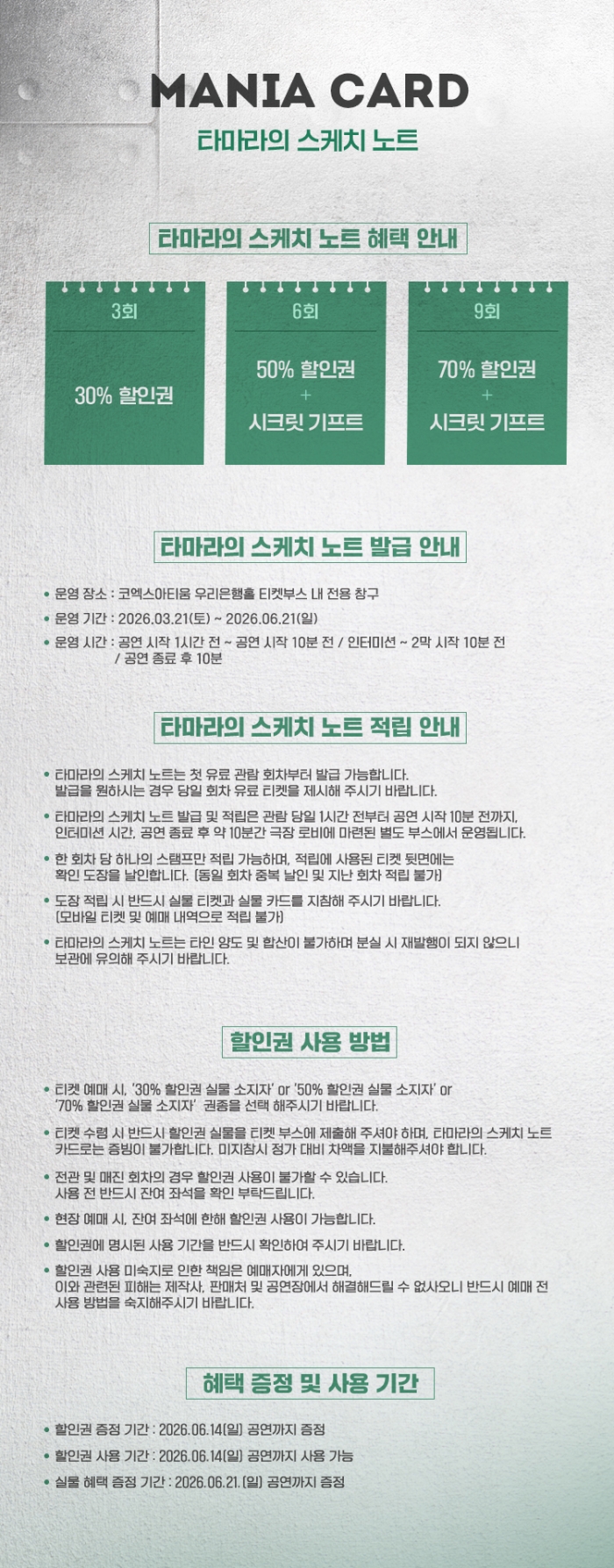 | 유효기간(이용조건) | 2026년03월28일(토) ~ 05월17일(일) (예매한 공연일시에 한해 이용 가능) | ||||||||